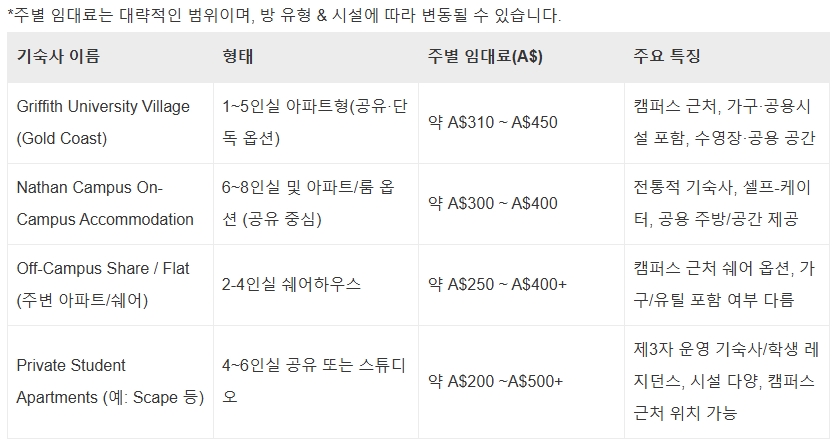 ■ 그리피스 대학교(GRIFFITH UNIVERSITY) 기숙사 안내