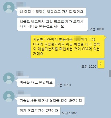 CPA에 왜요청했는지 물었더니 경력즘빙에 대한 불확실성이 있어서