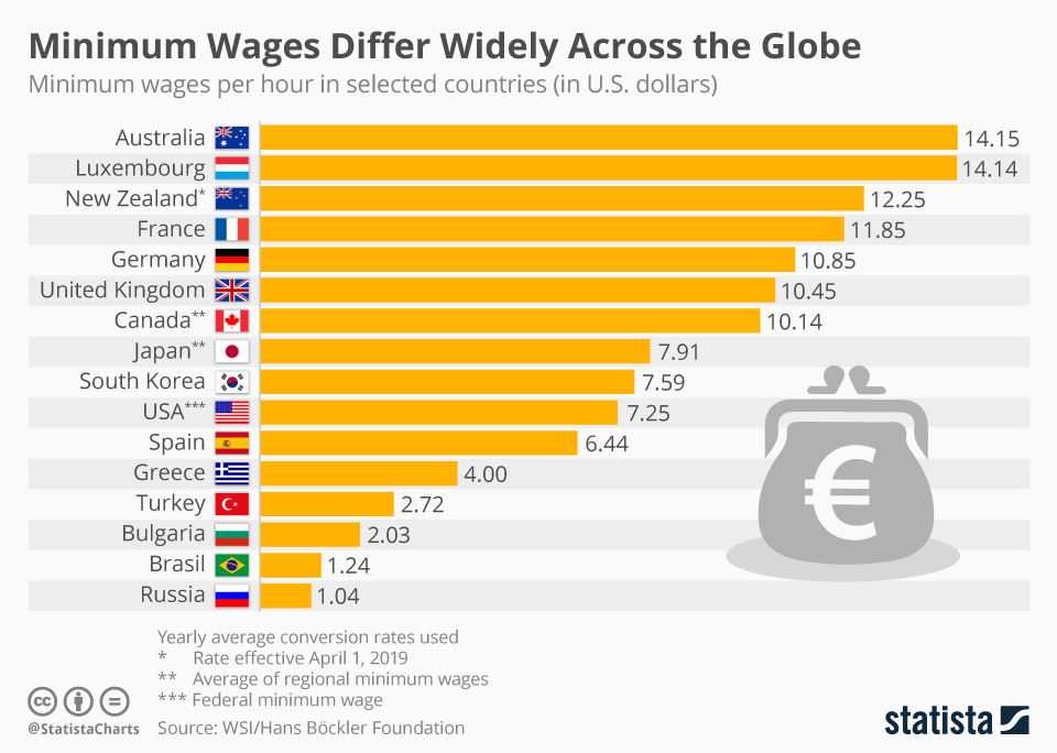 호주최저임금 세계최고수준 [호주법정최저시급: AUD 19.49]