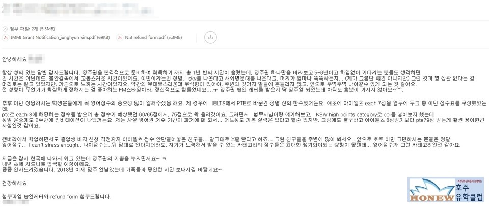 추후 이민 상담하시는 학생분들에게 꼭 영어점수의 중요성 많이 알려주셨음 해요. 제 경우에 IELTS에서 PTE로 바꾼건 정말 신의 한수였거든요. 애초에 아이엘츠 each 7점을 염두에 두고 총 이민 점수표를 구성했었는데,