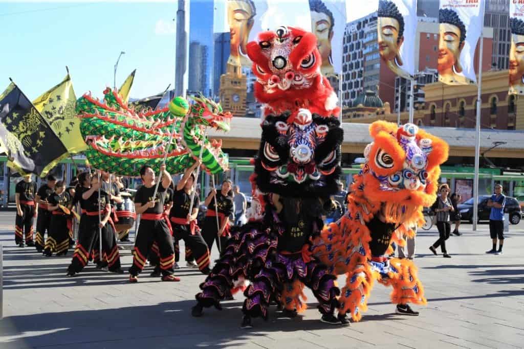 : 중국 춘절이 되면 멜버른 각지에서 전통 사자탈춤 등 중국 (및 베트남 등) 전통 음악과 춤, 무술 등을 선보이는 행사입니다.