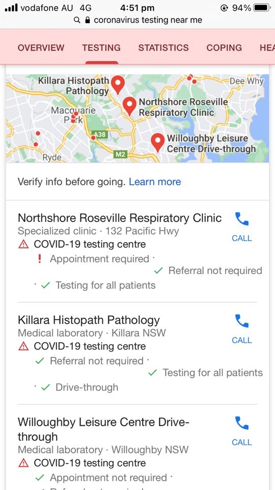 <이렇게 구글로 coronavirus test near me를 치면 가장 가까운 곳이 서치가 됩니다>