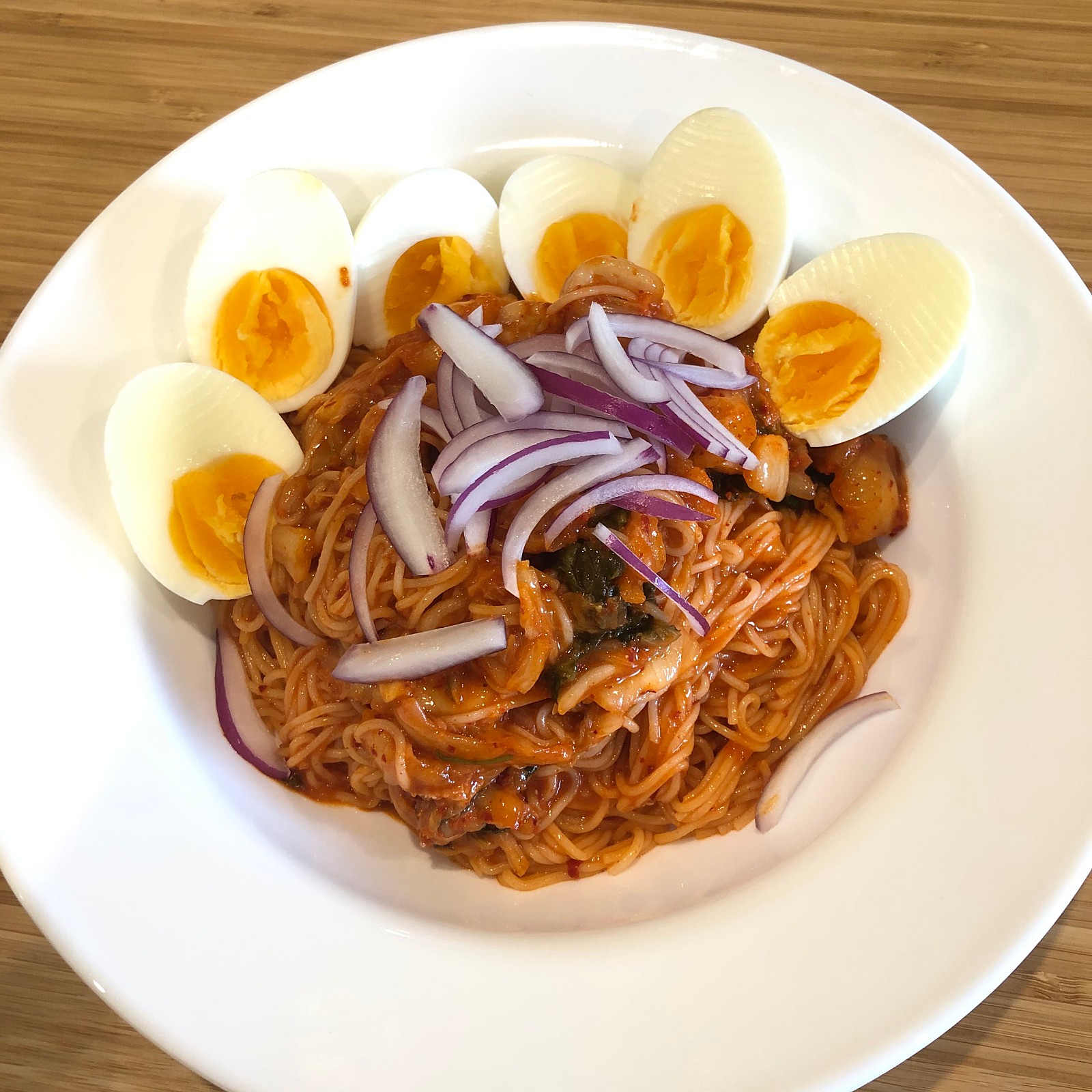 집에서 김치비빔국수를 호로록 만들고, 냉동딤섬을 룰루랄라 찝니다.