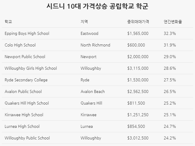 [호주조기유학][호주기사] 시드니 명문공립학교 학군 주택가격 두자리대 증가 - 도메인 학군 보고서