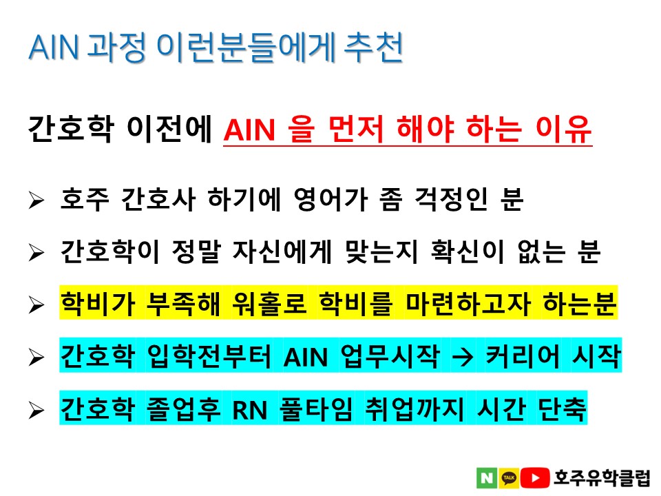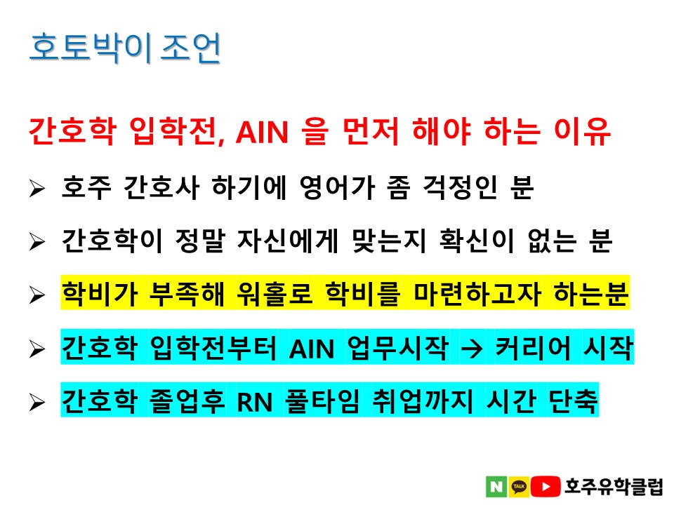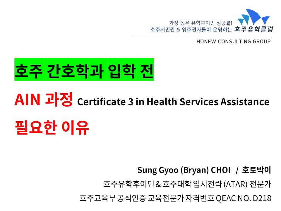 오늘 소개해드릴 영상의 주제는 "호주간호학과 입학전 AIN 과정이 필요한 이유" 입니다.