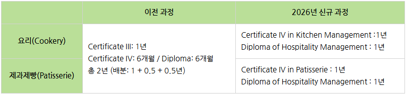 특히, 2026년부터는 호주정부의 새로운 트레이닝패키지 기준을 완전히 반영해