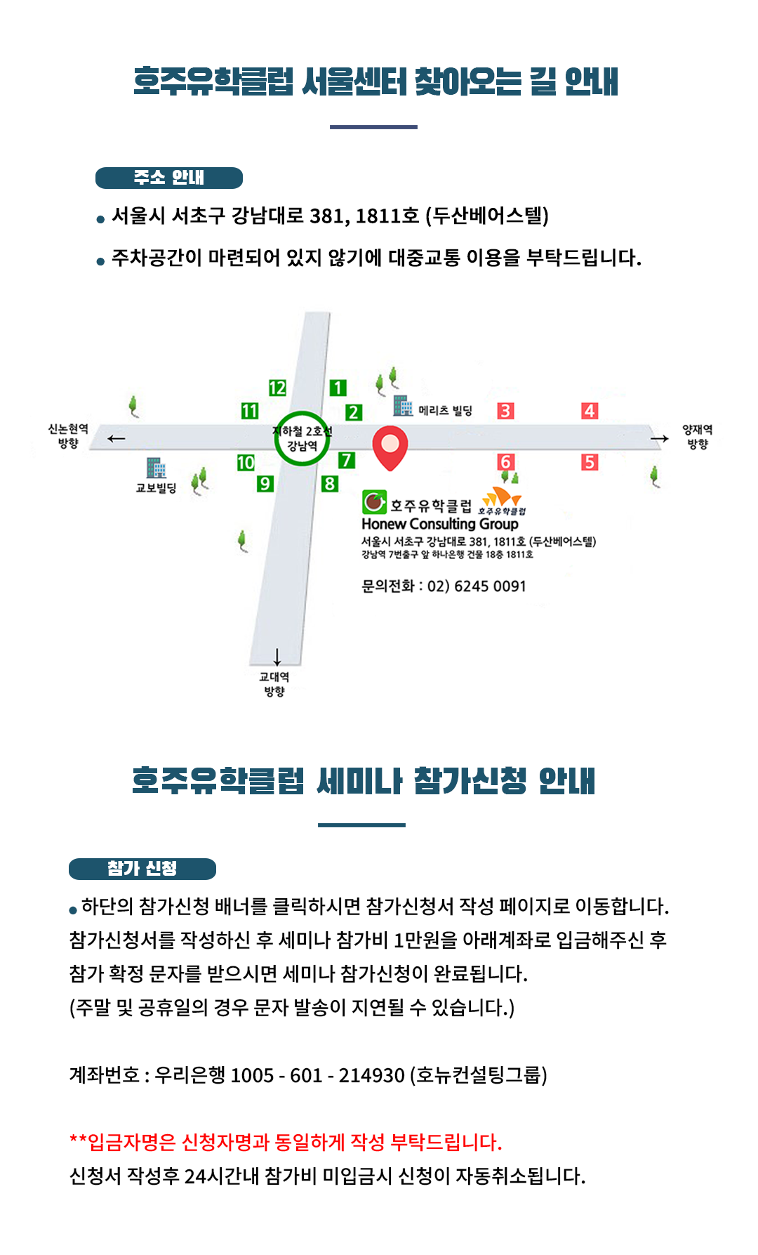 서울시 서초구 강남대로 381, 1811호 (강남역 7번출구 옆 하나은행 18층)