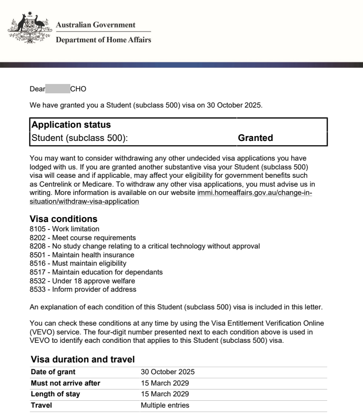 무사히 학생비자 승인되어서 너무 다행입니다.
