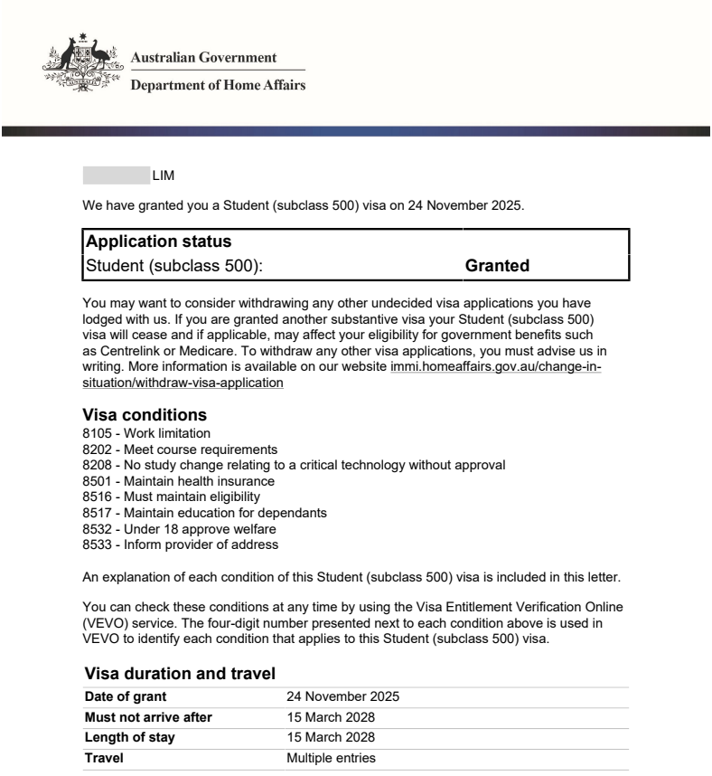 무사히 학생비자가 승인되셨습니다!!